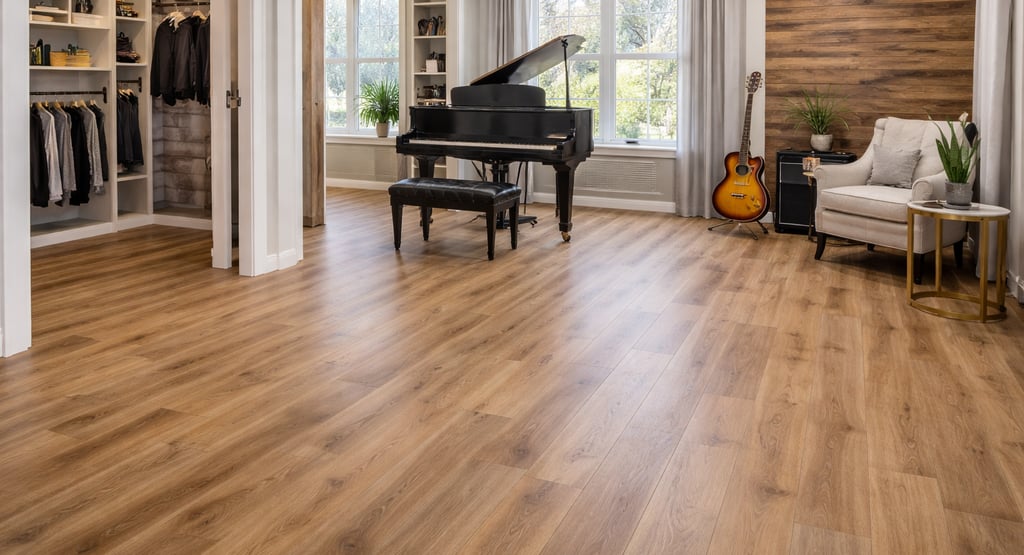 In conjunction with flooring, the selection of decor elements further amplifies the room's resonance with creativity. Wall colors can significantly influence the ambience, with shades that mirror the vibrancy of music—rich blues or calming greens act as a backdrop for artwork and memorabilia that celebrates the family's music journey. Soundproofing treatments, such as wall panels or rugs, not only enhance acoustics but also contribute to the overall decor, ensuring that the room remains a practical yet beautiful space for musical enjoyment.